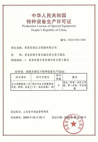 青島信泰壓力容器有限公司擁有山東省質(zhì)量技術(shù)監(jiān)督局頒發(fā)的D1D2類壓力容器設(shè)計(jì)許可證和制造許可證,產(chǎn)品主要有:低中高壓儲(chǔ)氣罐系列、壓縮空氣罐、氮?dú)夤,氧氣罐,氫氣罐,真空罐不銹鋼儲(chǔ)氣罐、蒸汽儲(chǔ)氣罐、分氣缸,氣體緩沖罐系列、換熱器,穩(wěn)壓罐產(chǎn)品、儲(chǔ)存容器,化工容器、標(biāo)準(zhǔn),非標(biāo)壓力容器系列產(chǎn)品,主要配套與石油、化工、制藥、熱電、啤酒、機(jī)械制造、環(huán)保等行業(yè)所需D級(jí)壓力容器產(chǎn)品,形成多品種的中低壓力容器生產(chǎn)品種及規(guī)模。公司本著“客戶第一,誠(chéng)信至上”的原則,熱誠(chéng)歡迎各界朋友前來(lái)參觀、考察、洽談業(yè)務(wù)。